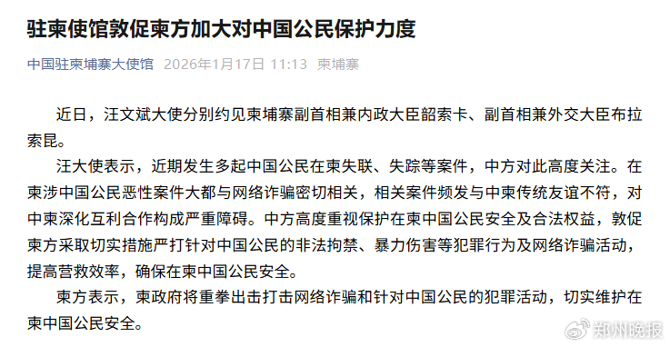 催促柬方严打针对中国的不法、及收集诈骗勾当,施救人员盲目施救致伤亡扩大,自2月1日起,审核未能及时发觉,